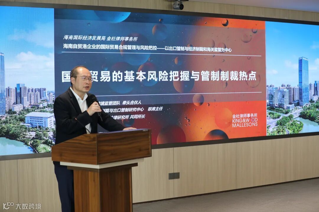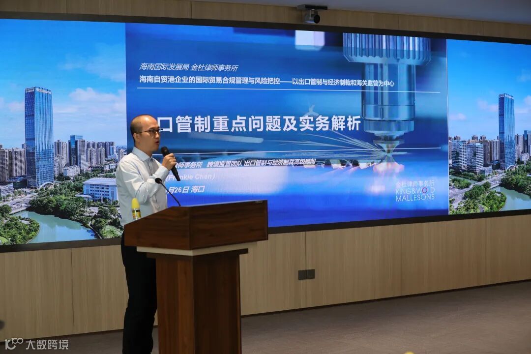近年来,国际贸易形势发生较大变化,中美贸易摩擦、俄乌战争等对国际供应链安全及进出口贸易发展产生了深刻影响,给企业的跨境合规管理提出了诸多新挑战。6月26日下午,海南国际经济发展局联合金杜律师事务所跨境监管服务团队,在海口中交国际自贸中心共同举办企航自贸港·海南自贸港国际贸易合规管理与风险把控专场讲座,围绕“出口管制、经济制裁和海关监管”等国际贸易风险管控核心问题进行讲解。