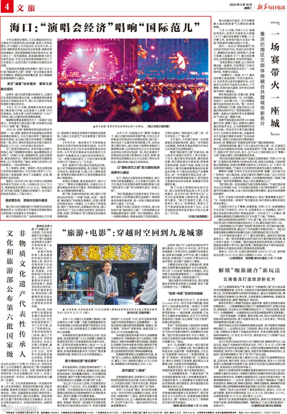 根据今年海口市政府工作报告,海口将加快打造“国际演艺之都”,力争每周推出多场精品剧场演出,每周一场大型演唱会,每月一场国际演唱会。海南省政府工作报告提出,支持打造海口“国际演艺之都”,进一步为市场注入了“强心剂”。
