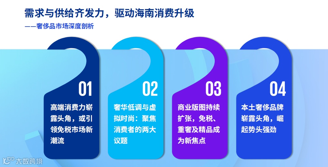 在政策的支持与推动下,海南自贸港旅游零售产业从体验式消费、奢侈品市场、免税业务、高端零售等方面探索全新发展模式同时不少旅游和零售企业开展数字化转型,线上与线下全渠道融合等方面的尝试,有效提升了海南旅游零售产业竞争力与消费升级,并且呈现四大趋势: