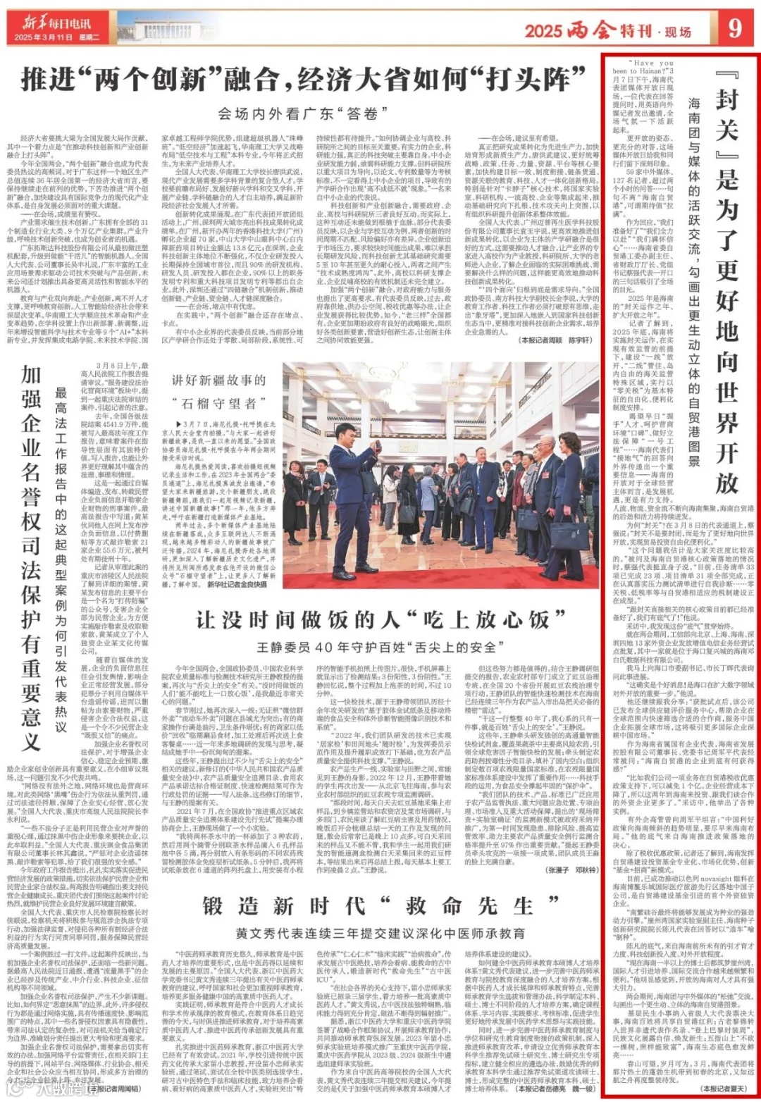 两会期间,海南团与中外媒体的“松弛”交流,勾画出一个更生动、立体的海南自贸港图景。