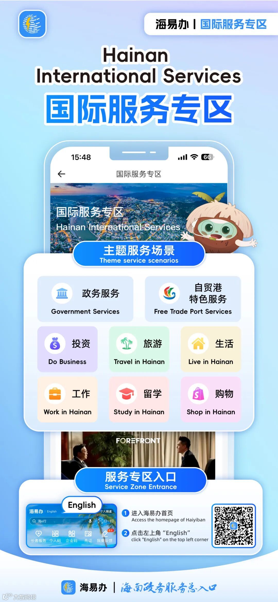 提供简明易懂、及时便捷、优质精准的一站式国际化服务,将努力成为展现海南良好营商环境、传播海南自贸港美好形象的重要窗口。