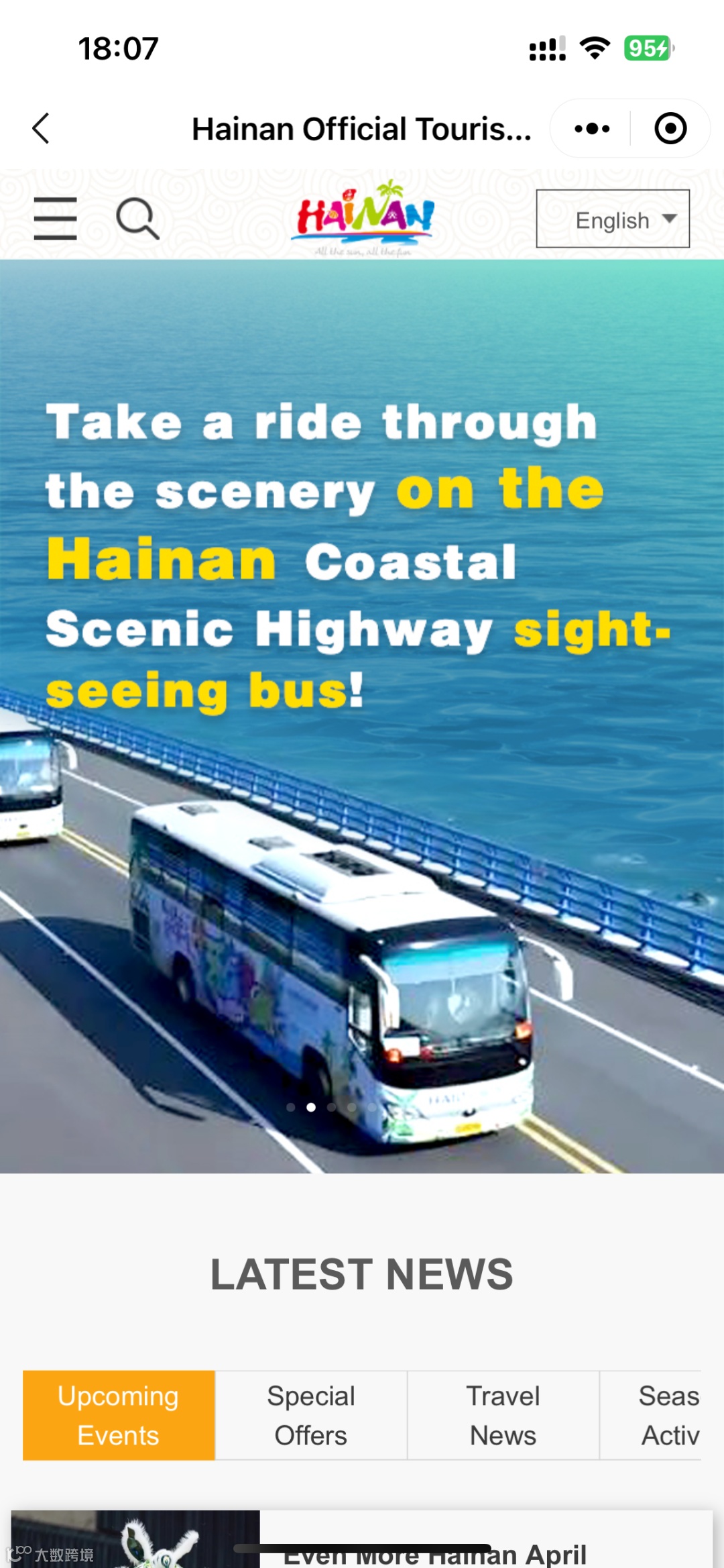 专区设有“旅游”主题板块,帮助外籍人士快速了解海南的特色文化和风土人情,涵盖市县介绍、活动赛事、旅游攻略、美食美景、民间节庆等信息,让外籍人士感受海南丰富多彩的文旅魅力。