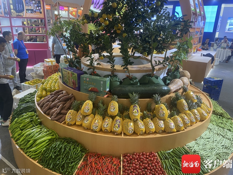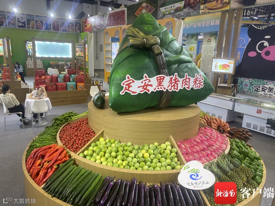 定安展台内的巨型水果圆盘。记者 王子遥 摄