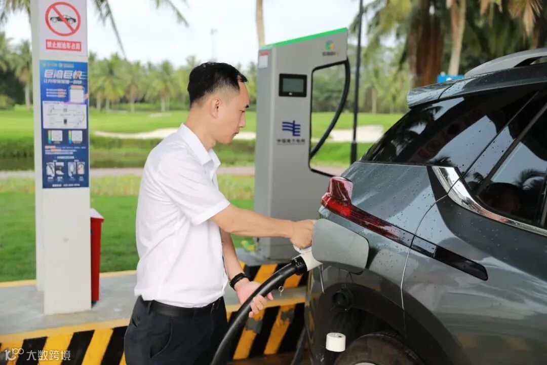 凌晨,海口市中心的大街小巷、乡镇居民楼下,一辆辆新能源汽车正在大小充电桩前不断汲取着“绿色能量”。