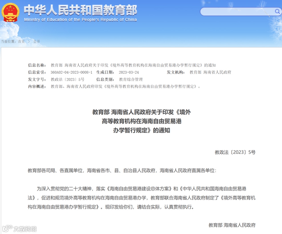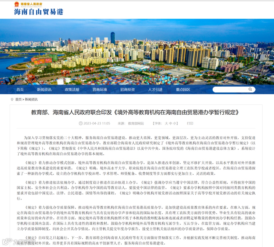 以下为《境外高等教育机构在海南自由贸易港办学暂行规定》(详情点击文末【阅读原文】查看):