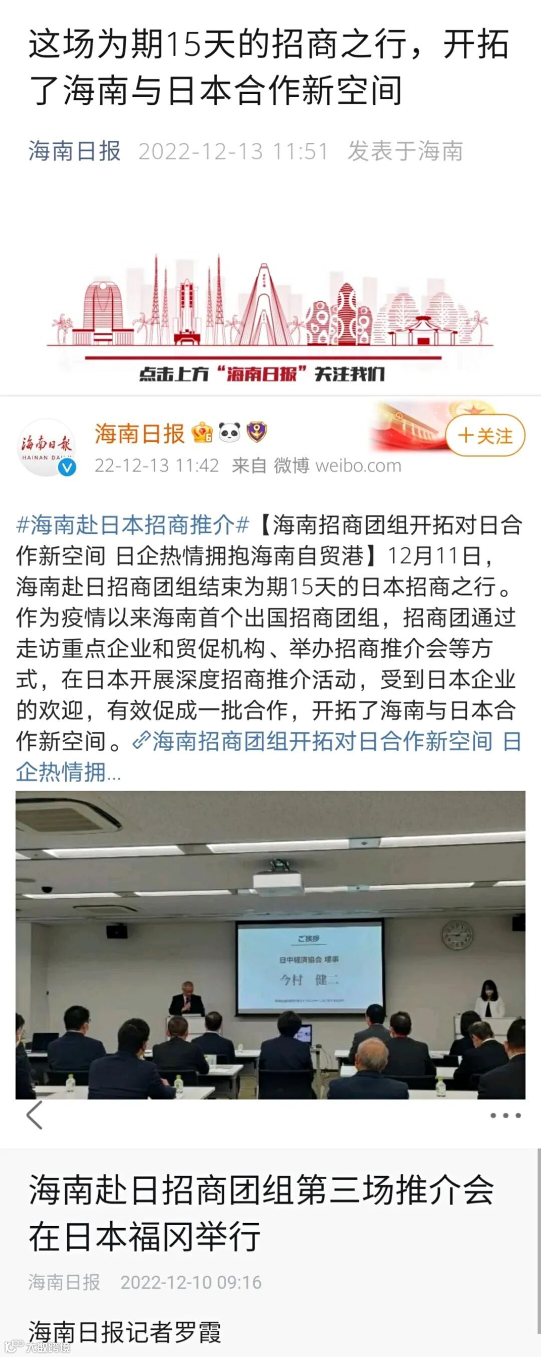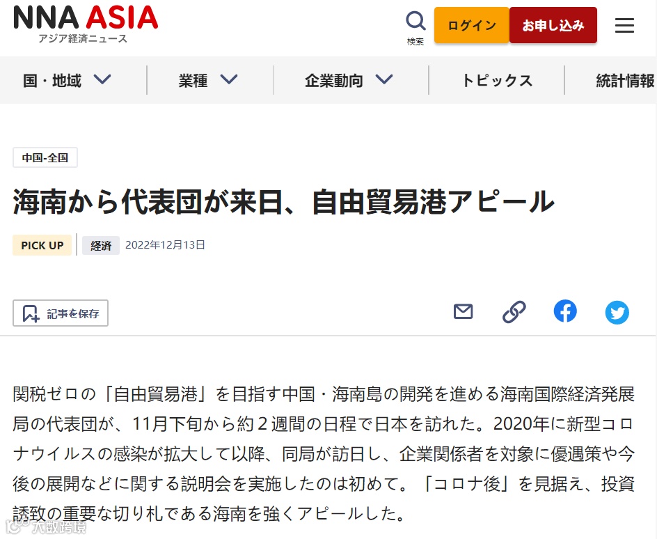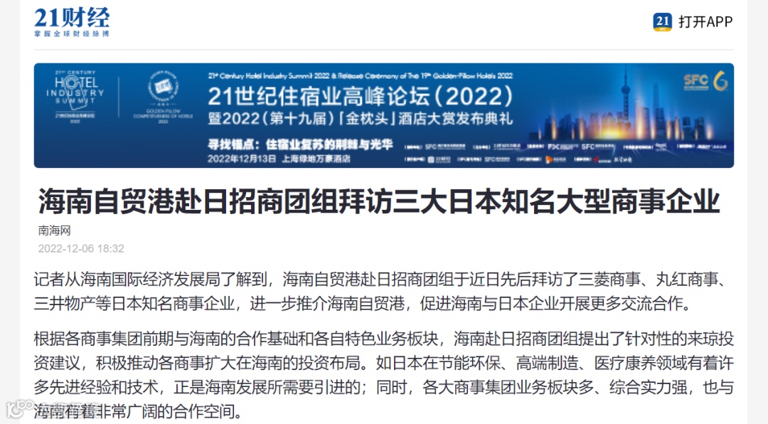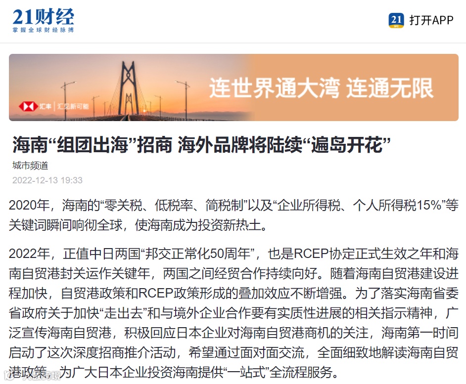 新京报:海南自贸港赴日招商团举办推介活动——系新冠疫情来海南首个出国招商团组
