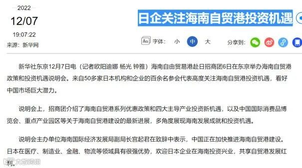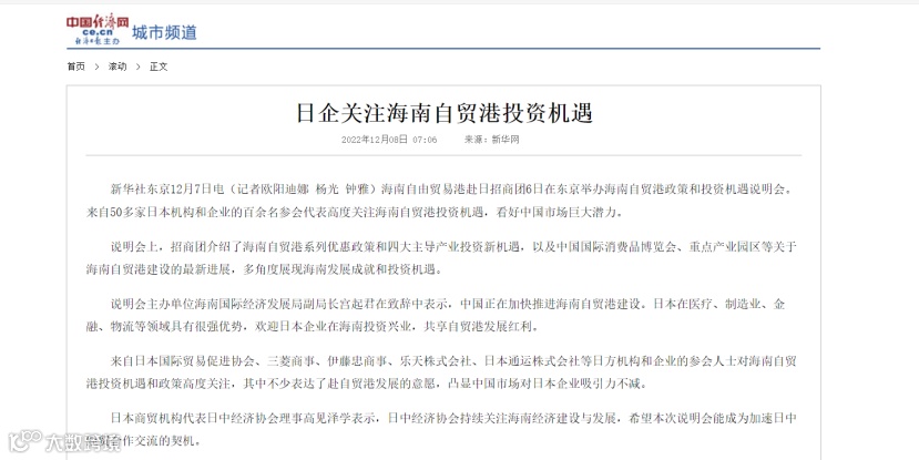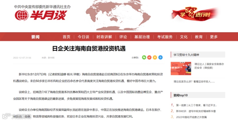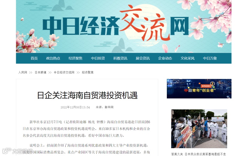 人民网转载:日企关注海南自贸港投资机遇