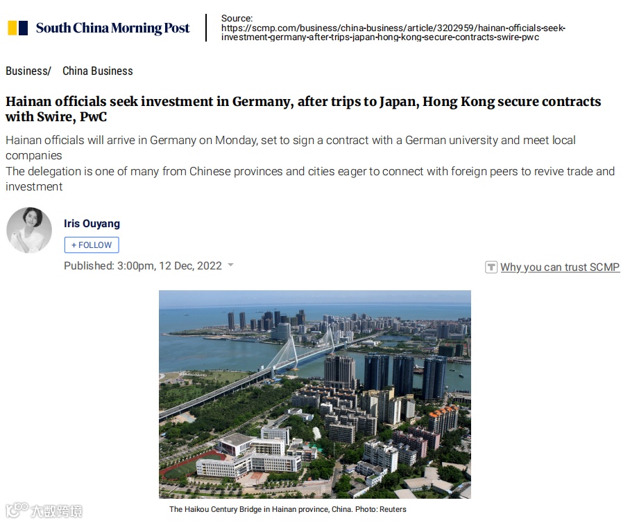 South China Morning Post(南华早报)、NNA ASIA( 亚洲经济新闻)、日本东方新报等海外平台频频关注,进一步传播海南自贸港声音。