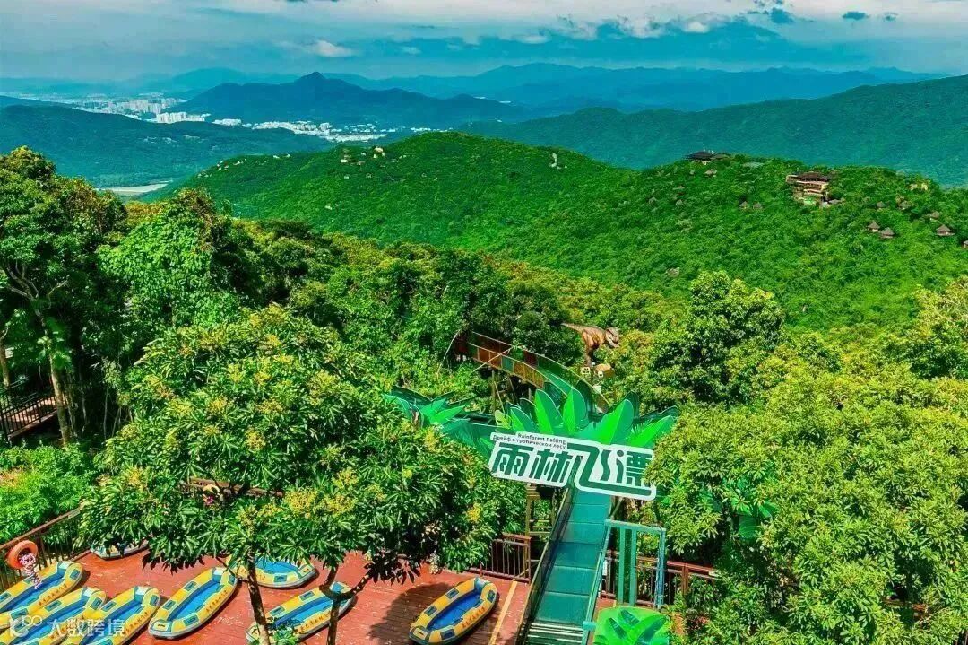 雨林飞漂全长3100米,雨林飞漂宛如林间的过山车一般,飞掠雨林、穿越密林深处、俯瞰山海美景等等,亲密接触大自然的快乐。