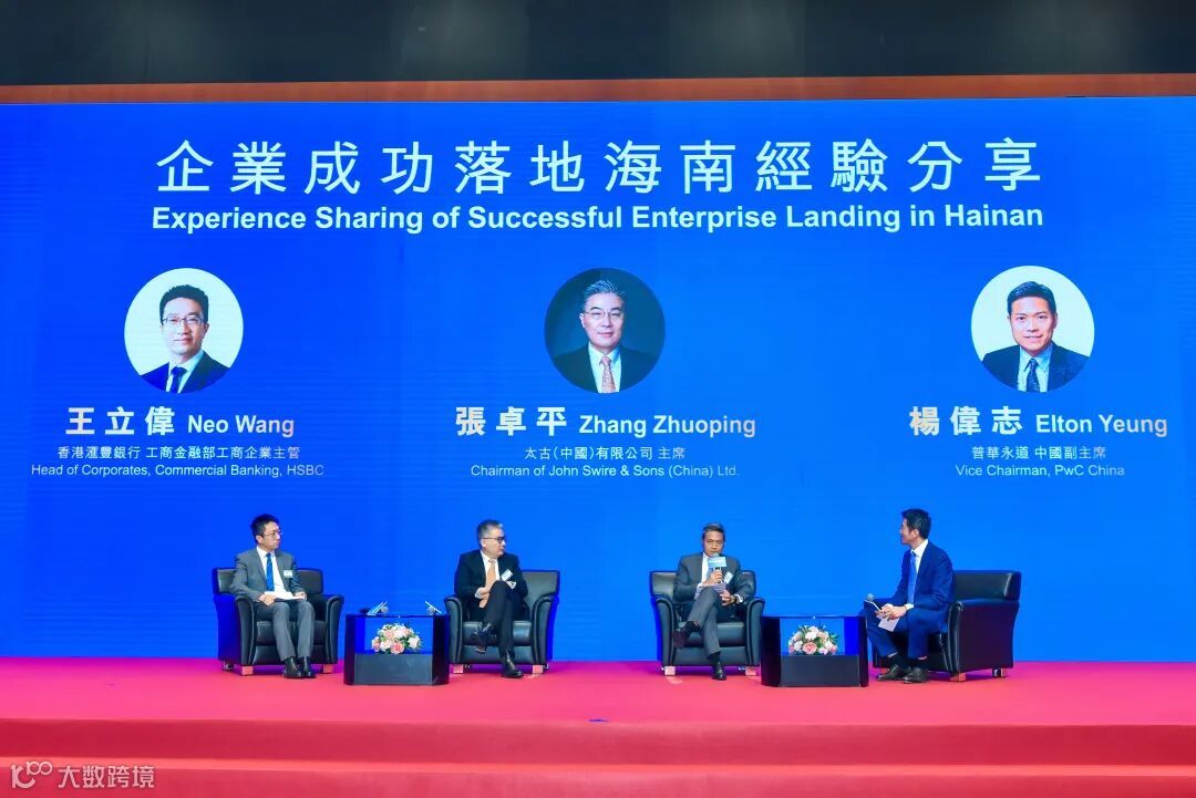 在企业经验分享环节,太古(中国)有限公司主席张卓平、普华永道中国副主席杨伟志、香港汇丰银行工商金融部工商企业主管王立伟一一分享落地海南经验以及发展规划。