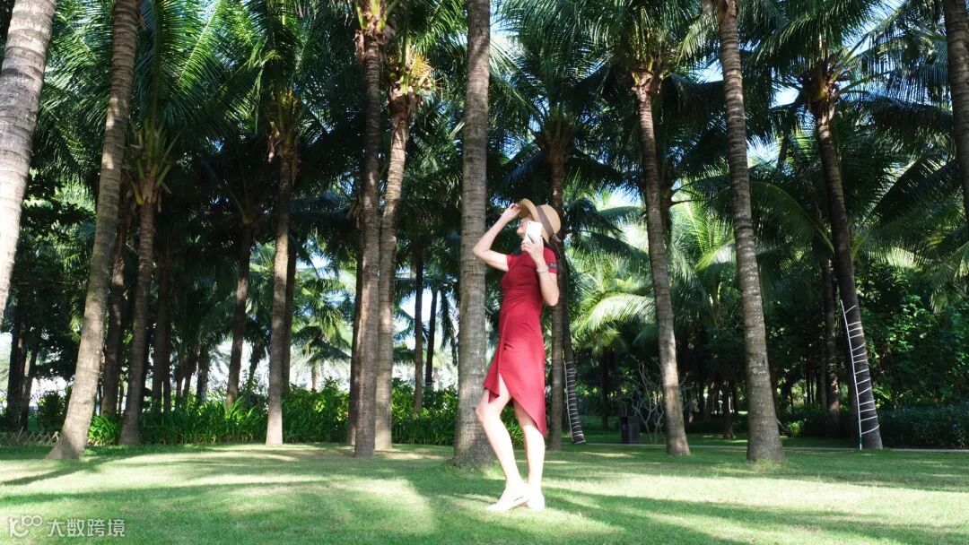 树影婆娑的椰林,长到七八层楼的高度,走在椰林下,只有清新和凉意。在这满满都是椰树的世界里,幸福感爆棚,顺便凹个造型,秒出一组出圈大片。