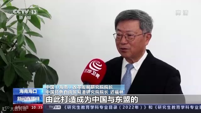 中国(海南)改革发展研究院院长、中国特色自由贸易港研究院院长 迟福林:充分释放海南在开放政策和制度安排的这样一个政策优势,然后加上地缘相近、人文相亲的这样有利条件,由此打造成为中国与东盟的自由经济区域、中国与东盟在健康教育合作的示范区、中国与东盟在蓝色伙伴关系的核心区、中国与东盟在人文交流当中的一个特区。