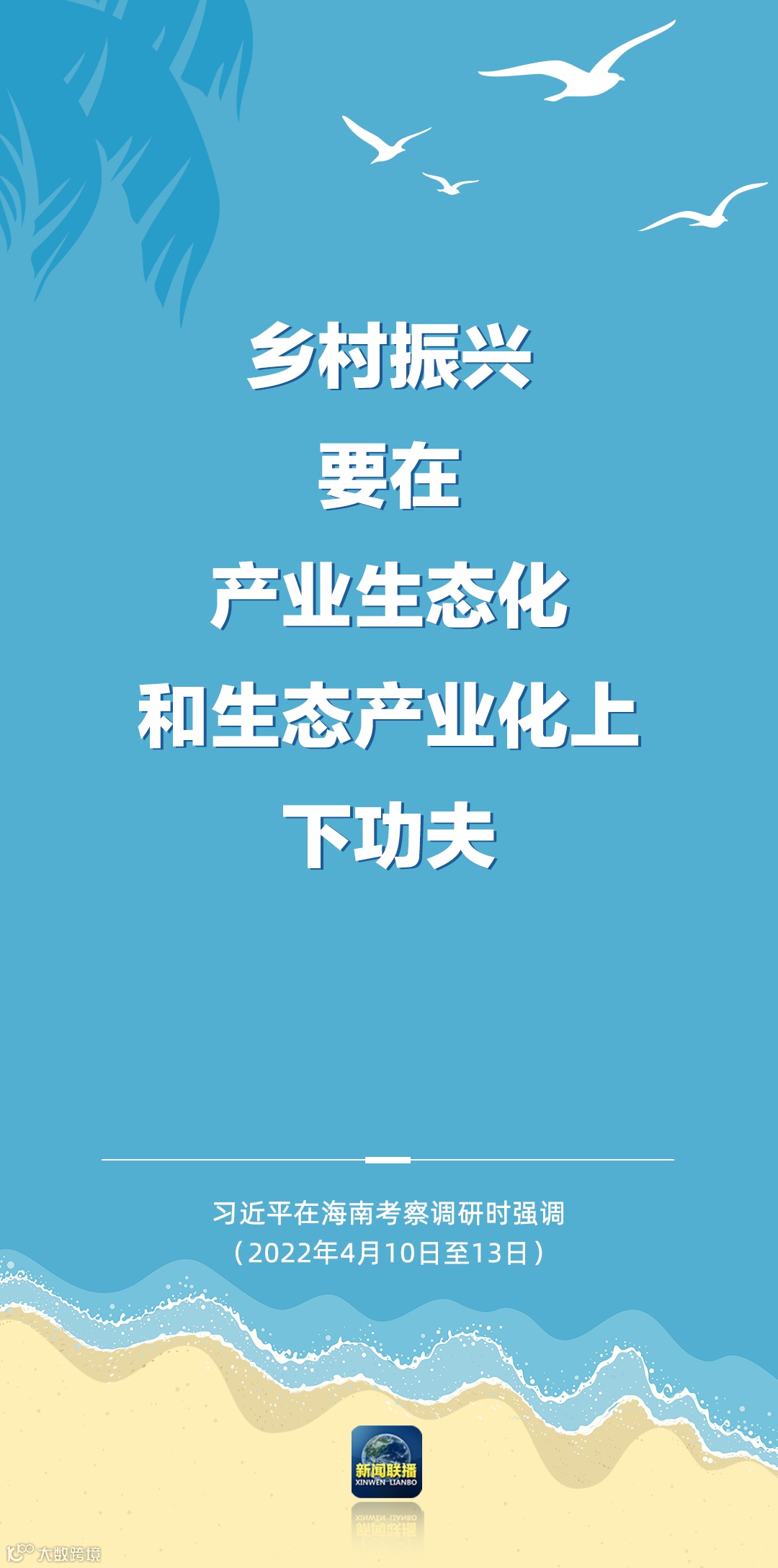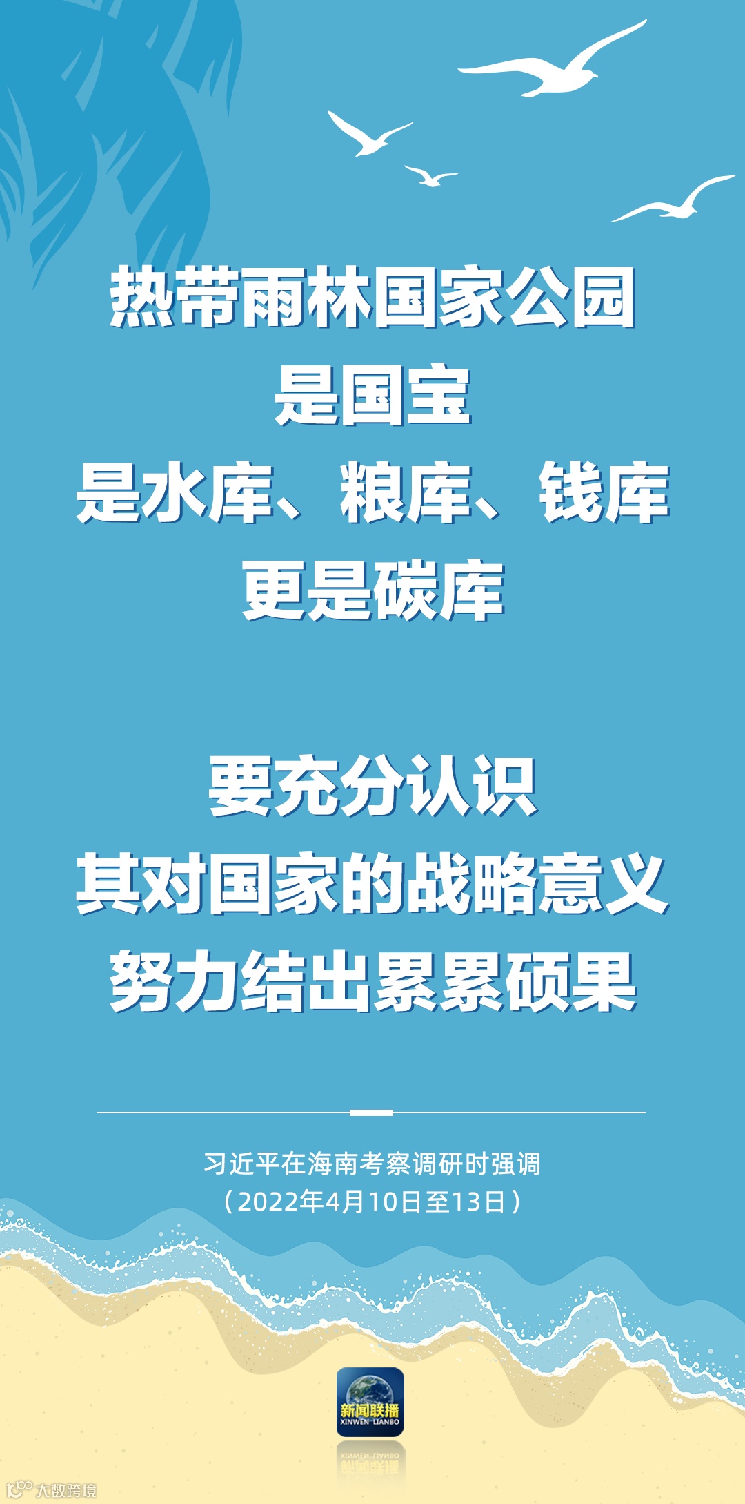 习近平指出,要深入推进农业供给侧结构性改革,加强农业全产业链建设,严守生态保护红线、永久基本农田、城镇开发边界三条控制线。要推进城乡及垦区一体化协调发展,加快推进国家南繁科研育种基地建设,完善天然橡胶产业扶持政策。要深入打好污染防治攻坚战,落实最严格的围填海管控和岸线开发管控措施。要扎实推进国家生态文明试验区建设。热带雨林国家公园是国宝,是水库、粮库、钱库,更是碳库,要充分认识其对国家的战略意义,努力结出累累硕果。