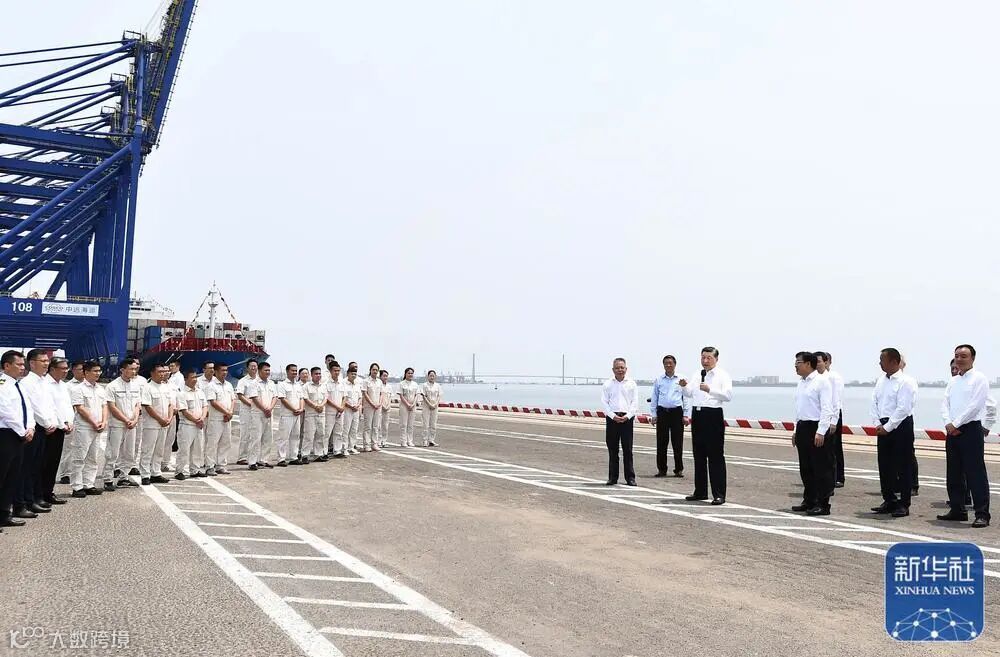 4月10日至13日,中共中央总书记、国家主席、中央军委主席习近平在海南考察。这是12日上午,习近平在洋浦国际集装箱码头小铲滩港区,同现场作业人员、挂职干部代表等亲切交流。