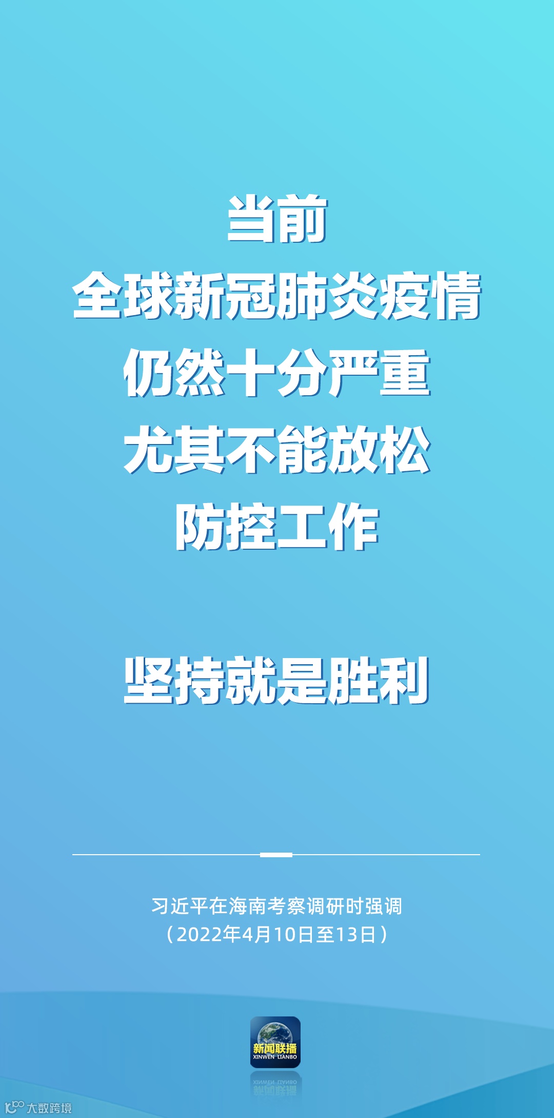 习近平指出,当前全球新冠肺炎疫情仍然十分严重,尤其不能放松防控工作。坚持就是胜利。要坚持人民至上、生命至上,坚持外防输入、内防反弹,坚持科学精准、动态清零,抓细抓实疫情防控各项举措。要克服麻痹思想、厌战情绪、侥幸心理、松劲心态,针对病毒变异的新特点,提高科学精准防控本领,完善各种应急预案,严格落实常态化防控措施,最大限度减少疫情对经济社会发展的影响。