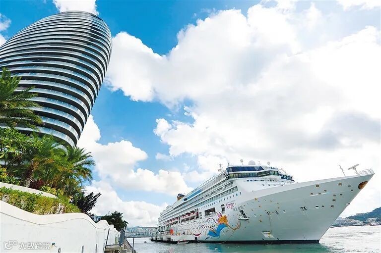 我省加强与东盟国家旅游领域的合作。图为靠泊在三亚凤凰岛国际邮轮港的邮轮 。武威 摄