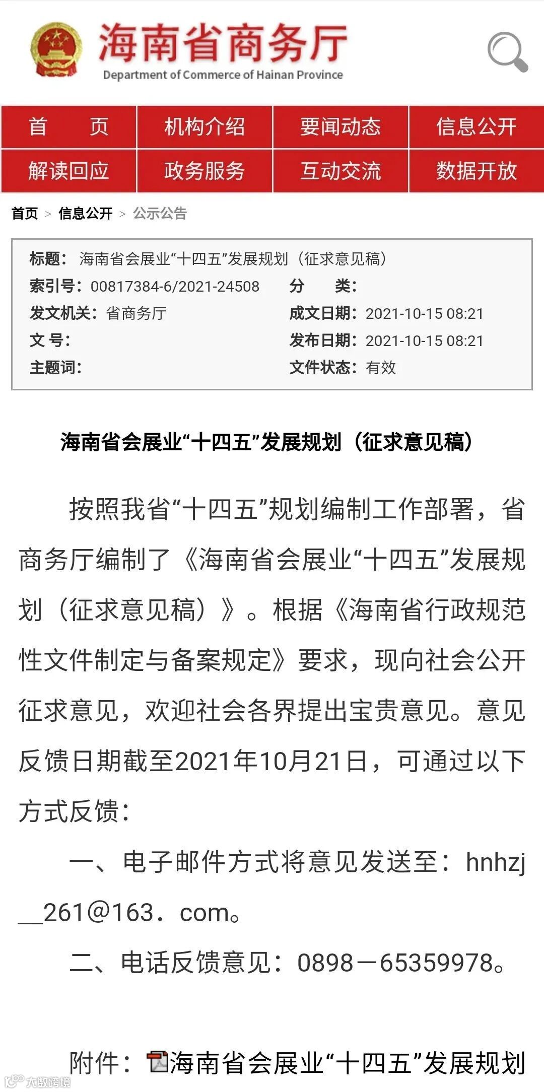 日前,由海南省商务厅编制的《海南省会展业“十四五”发展规划(征求意见稿)》(下称“《规划》”)公布,广泛征求听取社会公众意见。