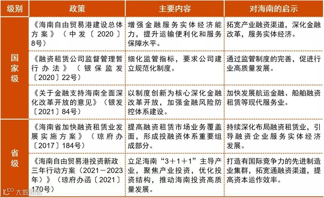 前言:融资租赁在服务实体经济中发挥着至关重要的作用。2020年6月1日,中共中央、国务院印发的《海南自由贸易港建设总体方案》提出为船舶和飞机融资提供更加优质高效的金融服务。海南自贸港建设离不开金融业的大力支持,航空、农业、高科技等重点产业对融资的需求更为突出。本文将从现状、趋势、机遇等角度,多方面探索海南融资租赁业未来发展方向。