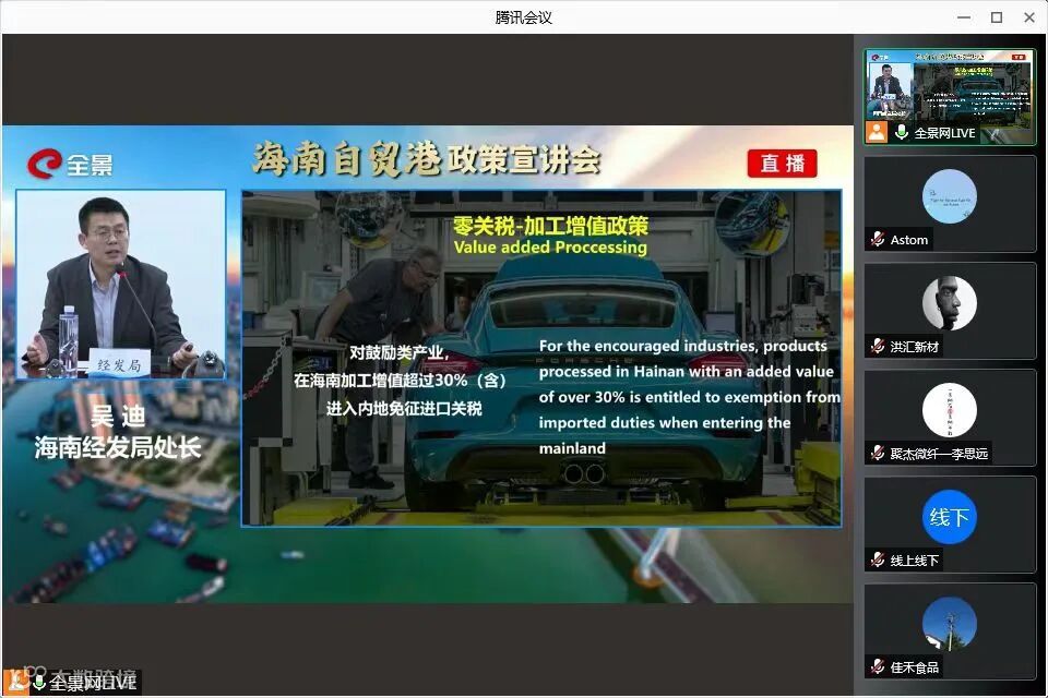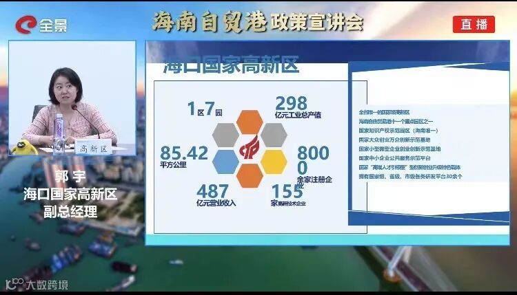 三亚中央商务区管理局、海口高新区国际投资咨询有限公司、海南生态软件园有限公司分别就自贸港园区规划、产业发展、落地政策等方面进行宣讲推介。