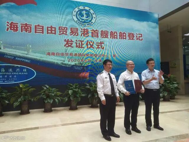 海南自由贸易港首艘船舶登记发证仪式