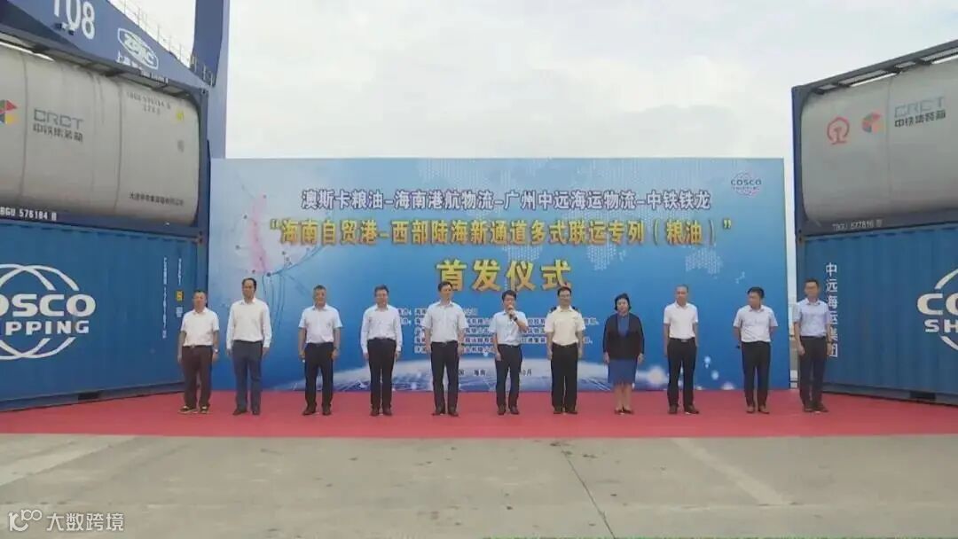 10月15日下午,“海南自贸港——西部陆海新通道多式联运专列(粮油)”从洋浦国际集装箱码头成功发运,这标志着“海南自贸港—西部陆海新通道”多式联运物流新通道正式启动,洋浦经北部湾链接内陆的多式联运体系取得赋能跨越式发展。