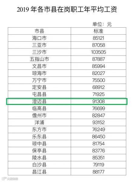 澄迈是海南唯一在岗职工年平均工资跨过10万元门槛的市县。