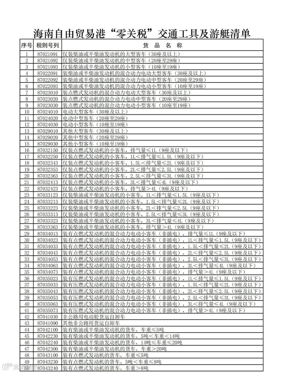 二、享受“零关税”政策的交通工具及游艇实行正面清单管理,具体范围见附件。清单由财政部、海关总署、税务总局会同相关部门,根据海南实际需要和监管条件动态调整。
