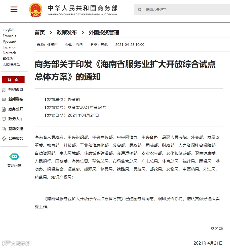 为全面有效推进海南省服务业扩大开放综合试点工作,制定本方案。