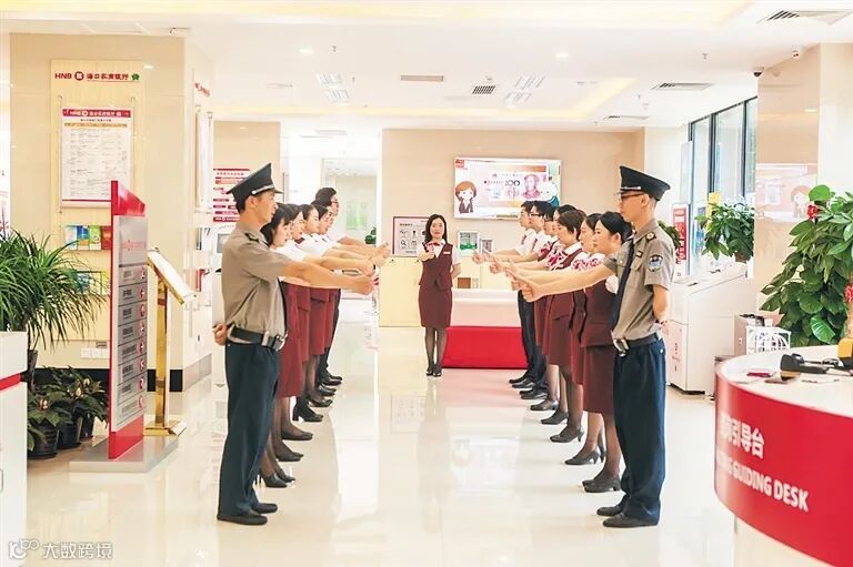 海口农商银行营业部工作人员利用每日晨会时间提升服务技能