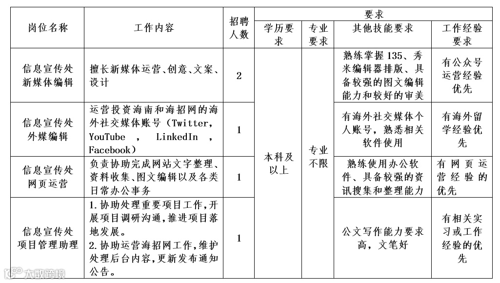 应聘者请将以下应聘材料打包压缩并命名为“姓名+学历+院校+专业”,发至zhaopin@investhainan.cn(招满即止):
