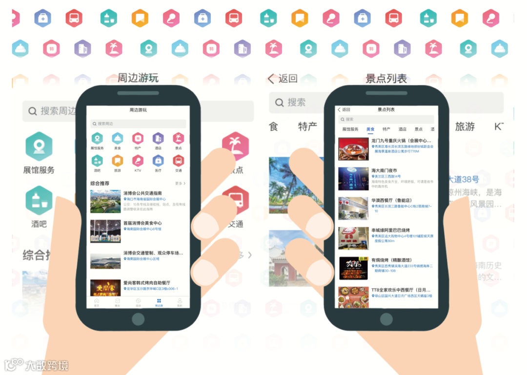 在这里您可以查看展馆内的供餐地点和营业时间,除此之外,该app还为您“量身定制”了各种美食、酒店、景点等信息,满足您参展之余的各项需求。在交通一栏里我们还贴心的为您提供了消博会的出行指南,让您能够选择到最佳的出行方式,“一键”直通展馆。