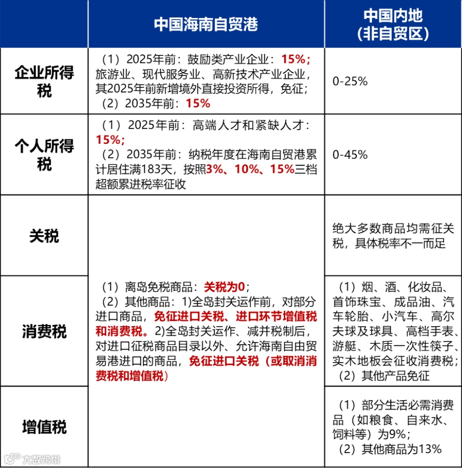 零关税:全岛封关运作前,对部分进口商品,免征进口关税、进口环节增值税和消费税。全岛封关运作、简并税制后,对进口征税商品目录以外、允许海南自由贸易港进口的商品,免征进口关税。