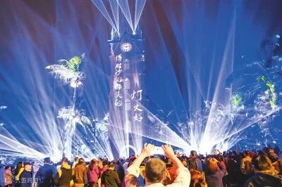 日前,在海南省海口市龙华区海甸溪畔,一场钟楼灯光秀吸引人们前来观赏、打卡。