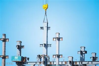 在海南海口江东的国际能源中心项目现场,建设者们抓紧施工,目前该项目已进入地上主体结构9层钢梁施工阶段,预计在2021年底前投入使用,成为一个国际大宗商品交易平台及现代物流总部。