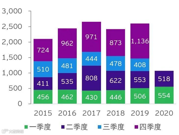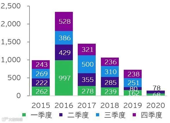 图表2:2015-2020年上半年中企宣布的海外并购情况(亿美元)