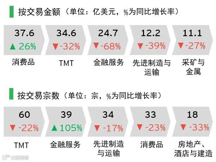 海外并购金额总体大幅下降,消费品最受青睐