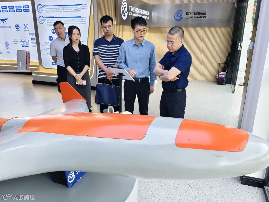 考察组前往广西优可福航空科技有限公司,就企业创新发展情况、未来市场潜力、如何推动园区“低空经济”的快速发展等内容进行探讨。广西优可福航空科技有限公司作为园区无人机企业的新生力量,拥有一支经验丰富、技术精湛的研发团队,不断在无人机领域取得创新突破,其产品在农业、测绘、环保等领域得到了广泛应用。