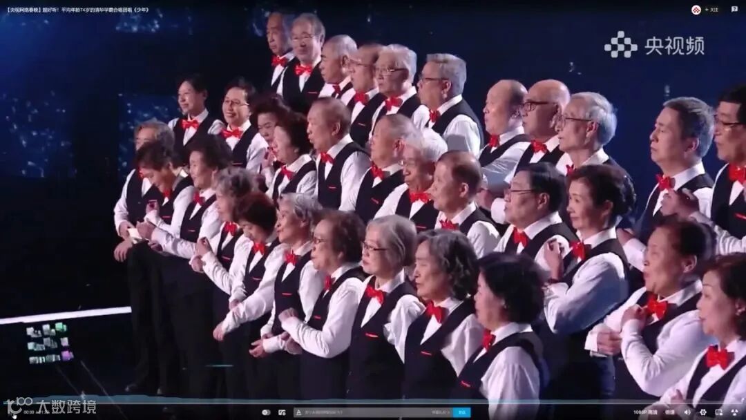 我举一个非常好的案例,是典型的轻传播。在清华大学 110 周年校庆晚会上,清华大学上海校友会艺术团献演《同一首歌》+《少年》合唱,当爷爷奶奶们齐刷刷卷起衬衫袖子的一刹那,年龄感消失了,生命的热力四射。这支清华校友合唱团的平均年龄达到了 75 岁,网友评论说,“又燃又感动”。