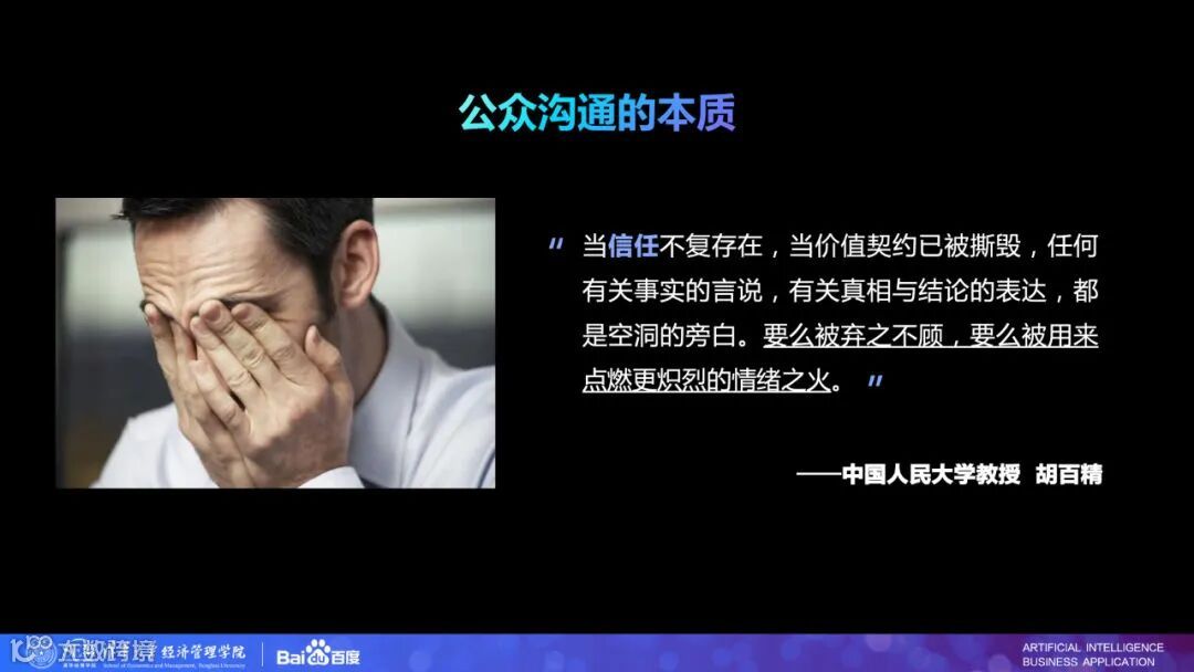 从公众沟通的本质来看,当一家企业产生了恶性事件的时候,你已经失去了公众的信任,公众在质疑你,用户在质疑你。用中国人民大学胡百精教授的话说就是,“当信任不复存在,当价值契约已被撕毁,任何有关事实的言说,有关真相与结论的表达,都是空洞的旁白。要么被弃之不顾,要么被用来点燃更炽烈的情绪之火。”
