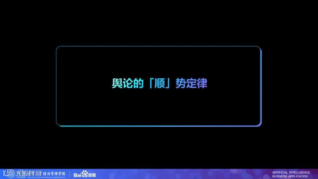 还有一个是顺势定律。对于企业的发展,最重要都是顺势,不管是技术潮流的势,还是说用户需求的势,在传播上更是如此。不管像清华大学这样的品牌,像百度公司这样的品牌,它其实每天都有大量的用户在讨论它。你只需要去了解,理解,用户自然讨论的是什么,他自然的兴趣点在哪里,你就能找到和他沟通的话术。