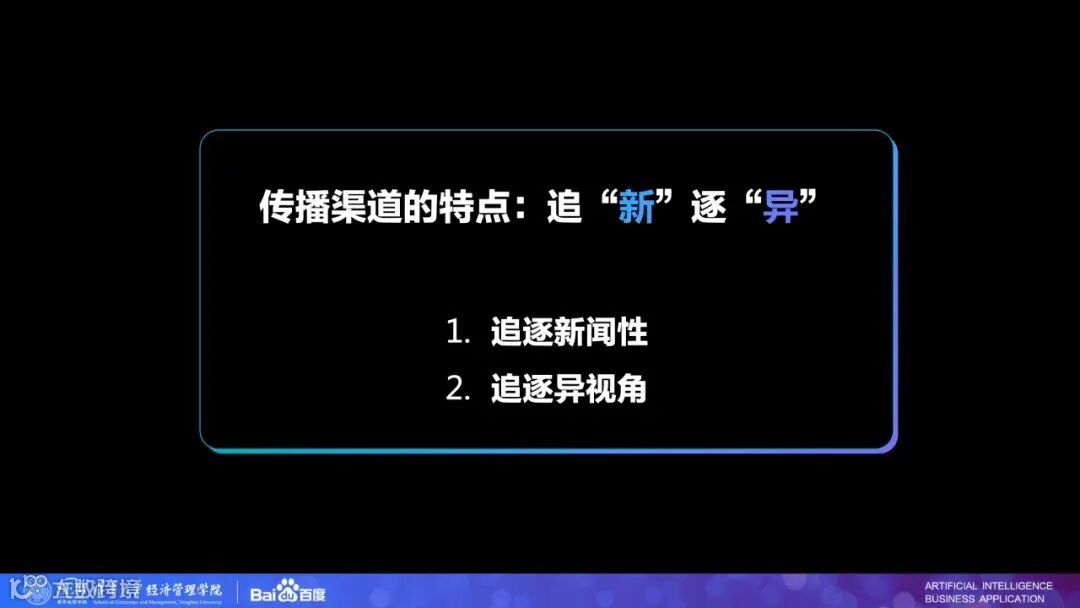 我再讲一下那个传播渠道的特点。大家不一定是做传播的,但是这些理念对大家会很有价值,就是怎么去认识媒体。我用了“追新逐异”这几个字,媒体天然是追逐新闻性的,同时它也会追逐不同的视角。所以你会发现说,为什么一个重大的新闻发生的时候,所有的 App 都抢着给你推送,然后推送完了之后,它还要继续挖别的新闻,因为它要在一个事件里面呈现不同的视角。