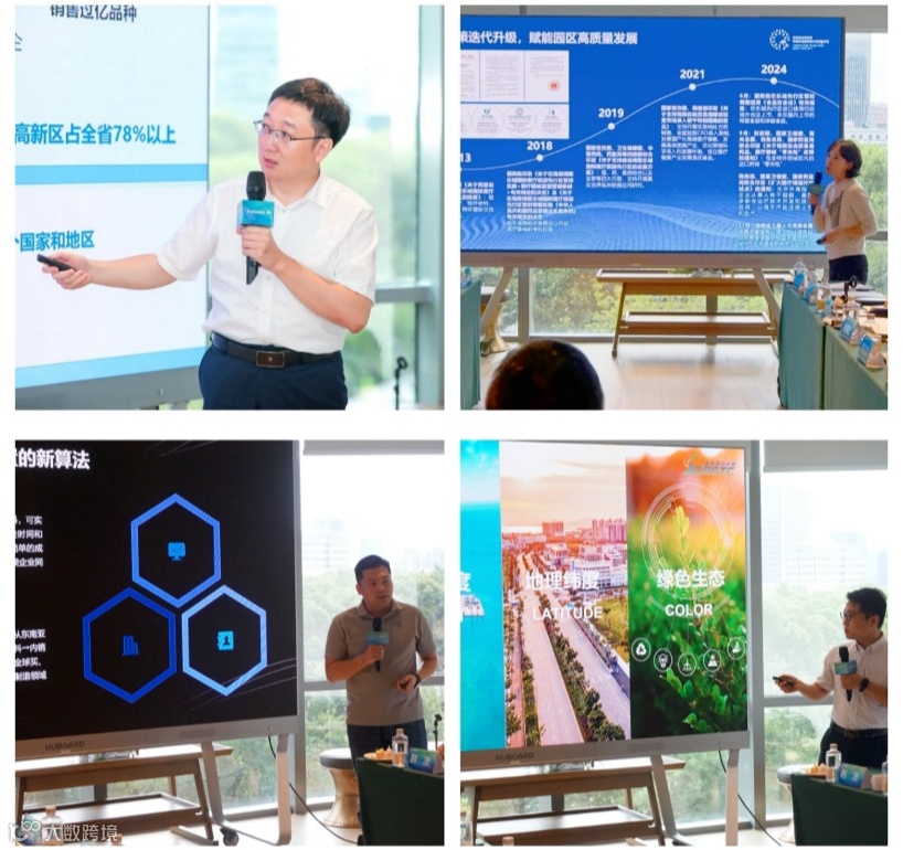 左上角顺时针方向起:海口高新区、博鳌乐城先行区、崖州湾科技城和洋浦开发区作推介