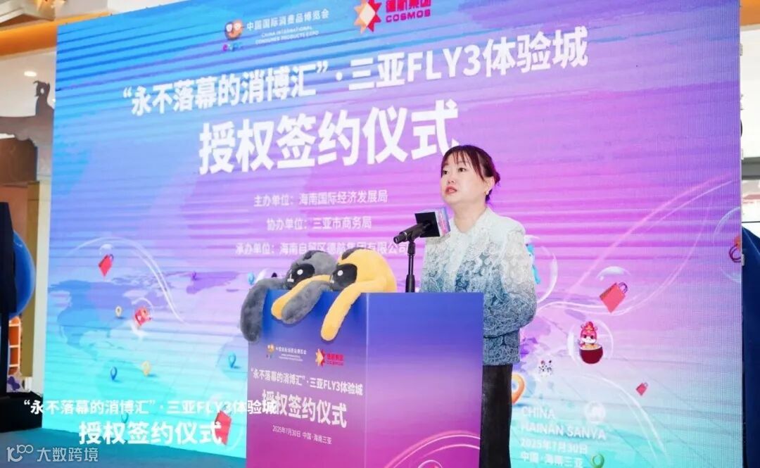 本次签约授权三亚FLY3体验城成为消博会首个线下体验空间,将消博会多个参展国家的消费精品走出展馆,在海南实现常态化展示和销售。