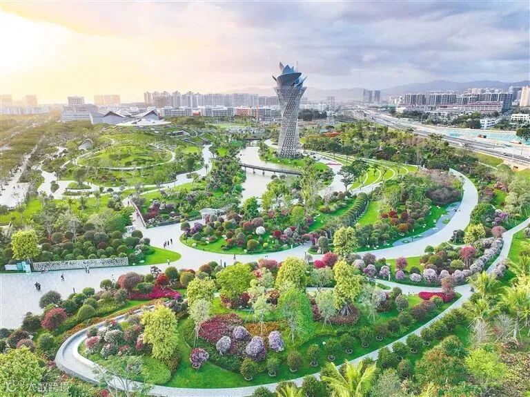 俯瞰位于三亚崖州湾科技城高新区的三角梅科研博览型公园。海南日报记者 王程龙 摄