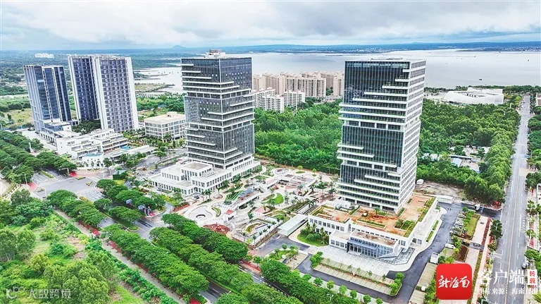 资料图:航拍位于儋州洋浦东部生活区新英湾大道的洋浦国际航运大厦。海南日报记者 陈元才 摄