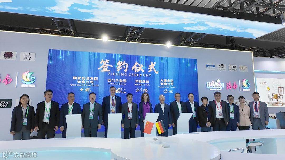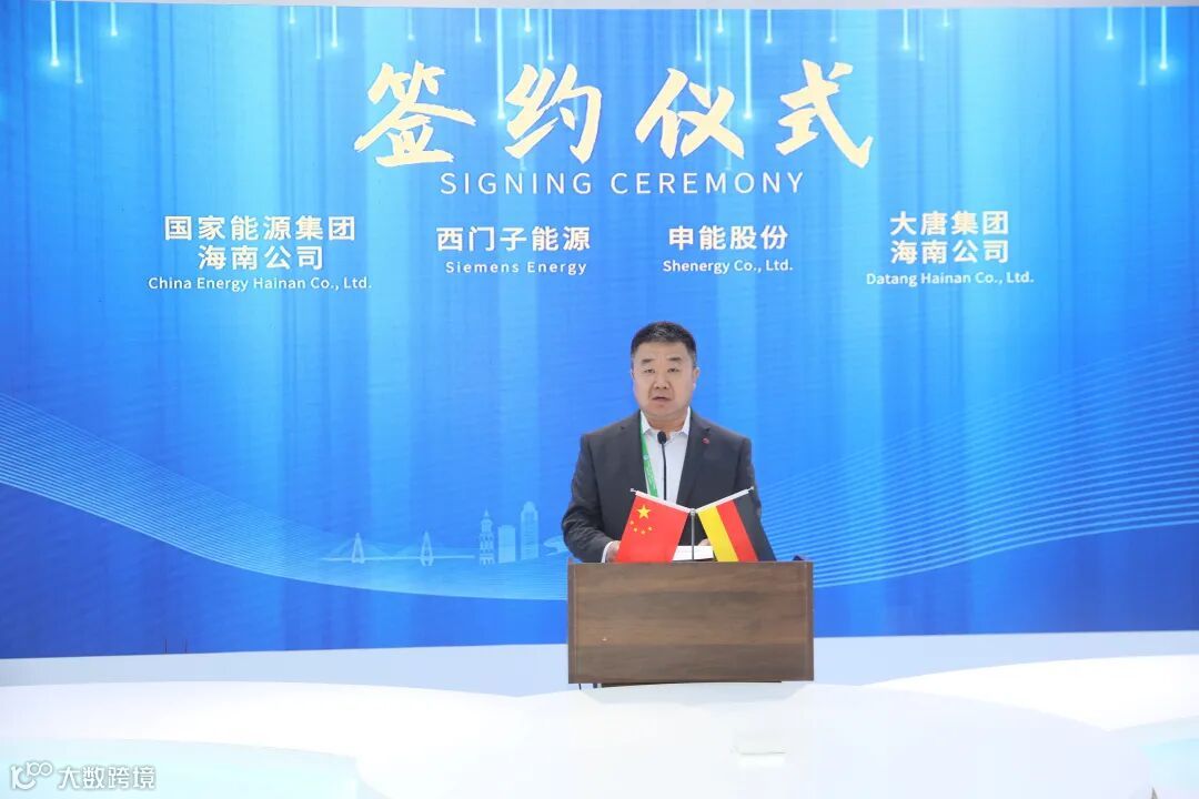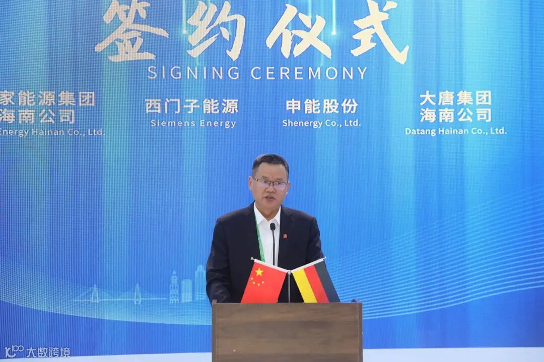 2024年11月5日,第七届中国国际进口博览会在上海开幕。德国西门子能源与申能股份、国家能源集团海南公司、大唐集团海南公司在进博会海南馆举行合作协议签约仪式,共同推动海南海上风电制绿氢绿醇,助力海南绿色能源产业发展。海南省政府副省长陈怀宇出席并致辞。