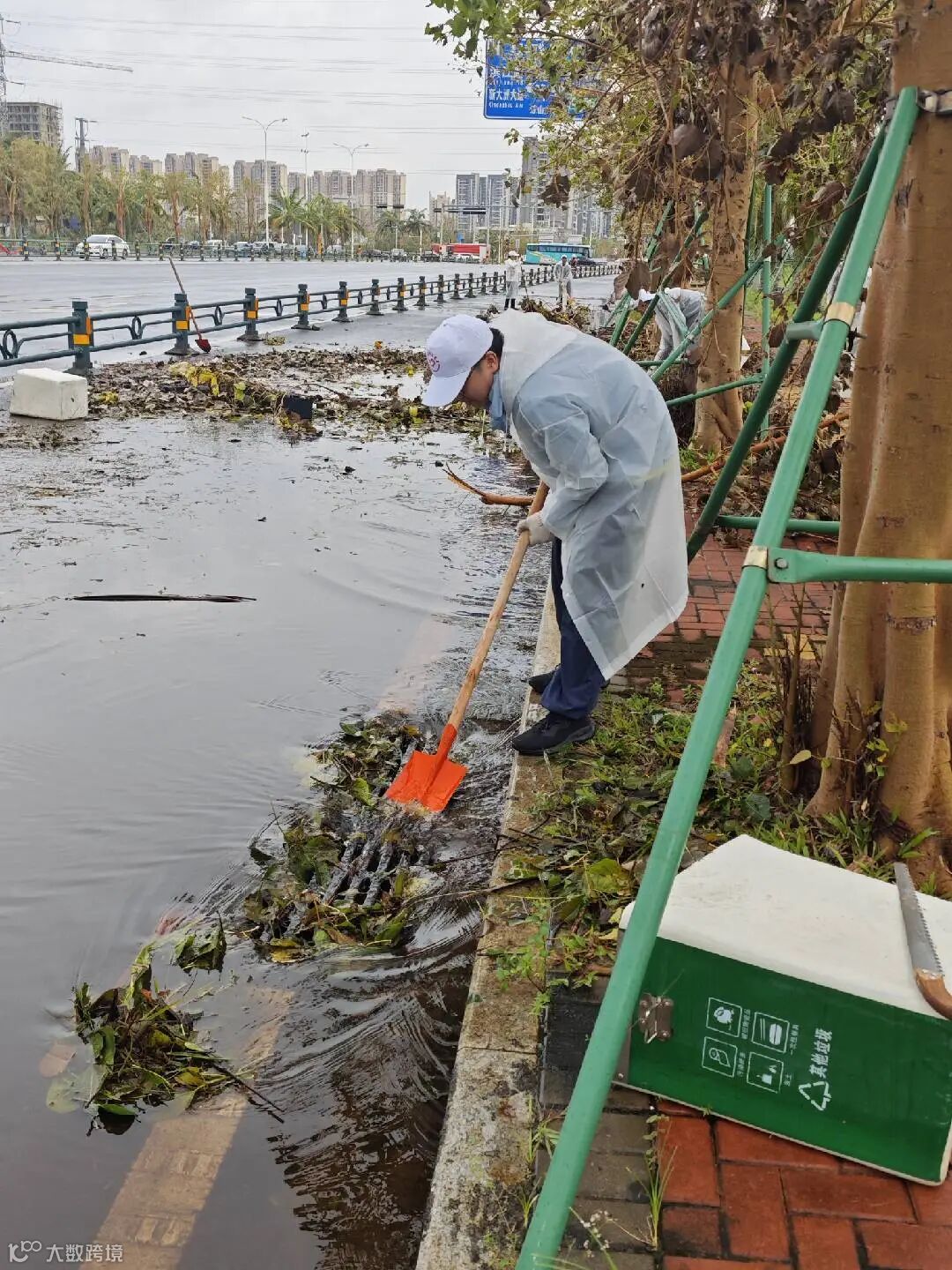 10日午后,根据新的安排,工作队又转战至美兰区琼山大道,冒雨清理道路障碍。两天内对琼山大道两侧的倒伏树木残枝基本清理完毕,并成功疏通了数十个排水口,有效缓解了积水问题。