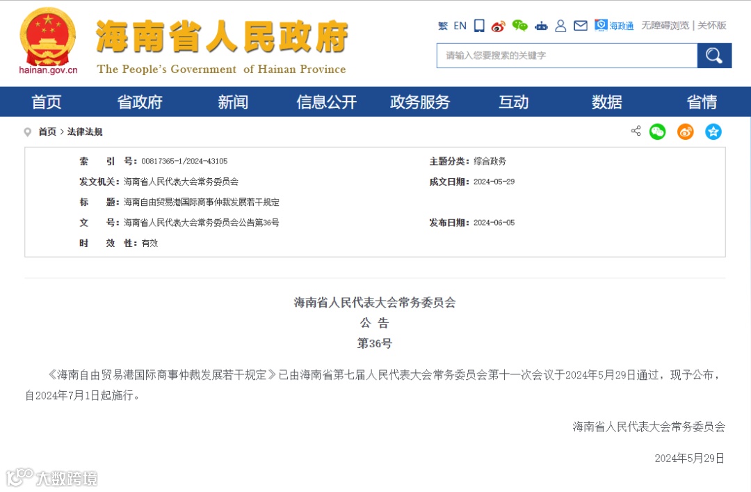 《规定》于5月29日经省人大常委会审议通过,将于7月1日正式施行,标志着我省仲裁制度改革创新达到了新高度,为打造法治化、国际化、便利化营商环境提供了新支点,将进一步推动海南自贸港涉外法治工作创新发展。