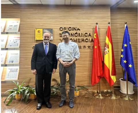 海南国际经发局拜访西班牙驻华大使馆广州经济商务处商务领事Jaime Lorenzo,刘如涛副局长介绍了消博会总体情况及第五届消博会筹备进展,双方探讨了组织西班牙国家馆,推动更多西班牙品牌企业参展,举办配套活动等事宜。