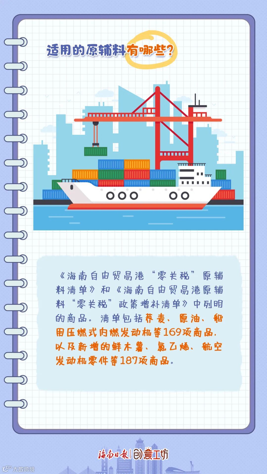 《海南自由贸易港“零关税”原辅料清单》和《海南自由贸易港原辅料“零关税”政策增补清单》中列明的商品。清单包括荞麦、原油、船用压燃式内燃发动机等169项商品,以及新增的鲜木薯、氯乙烯、航空发动机零件等187项商品。